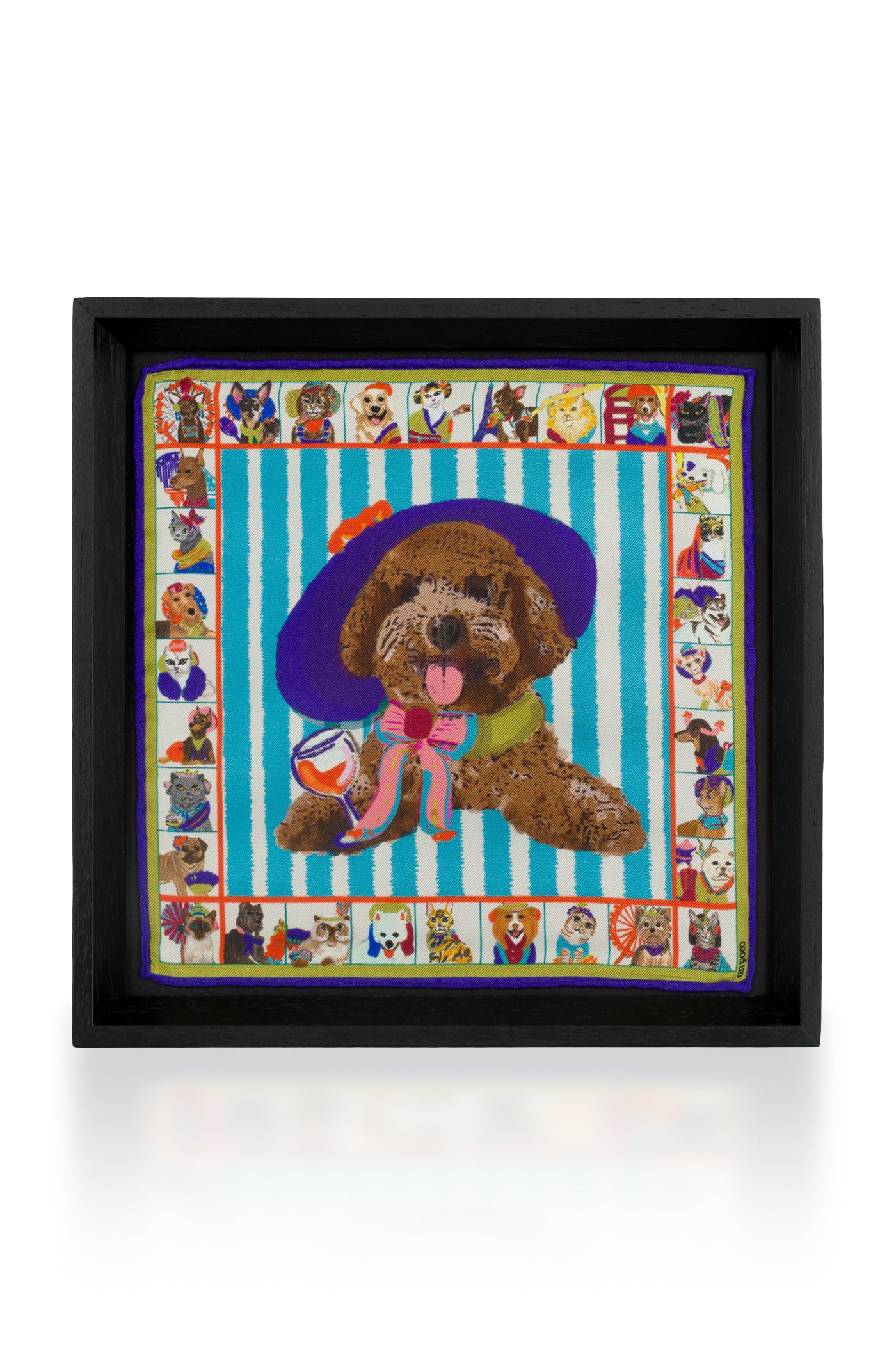 Parisian Poodle Black Framed Silk Scarf