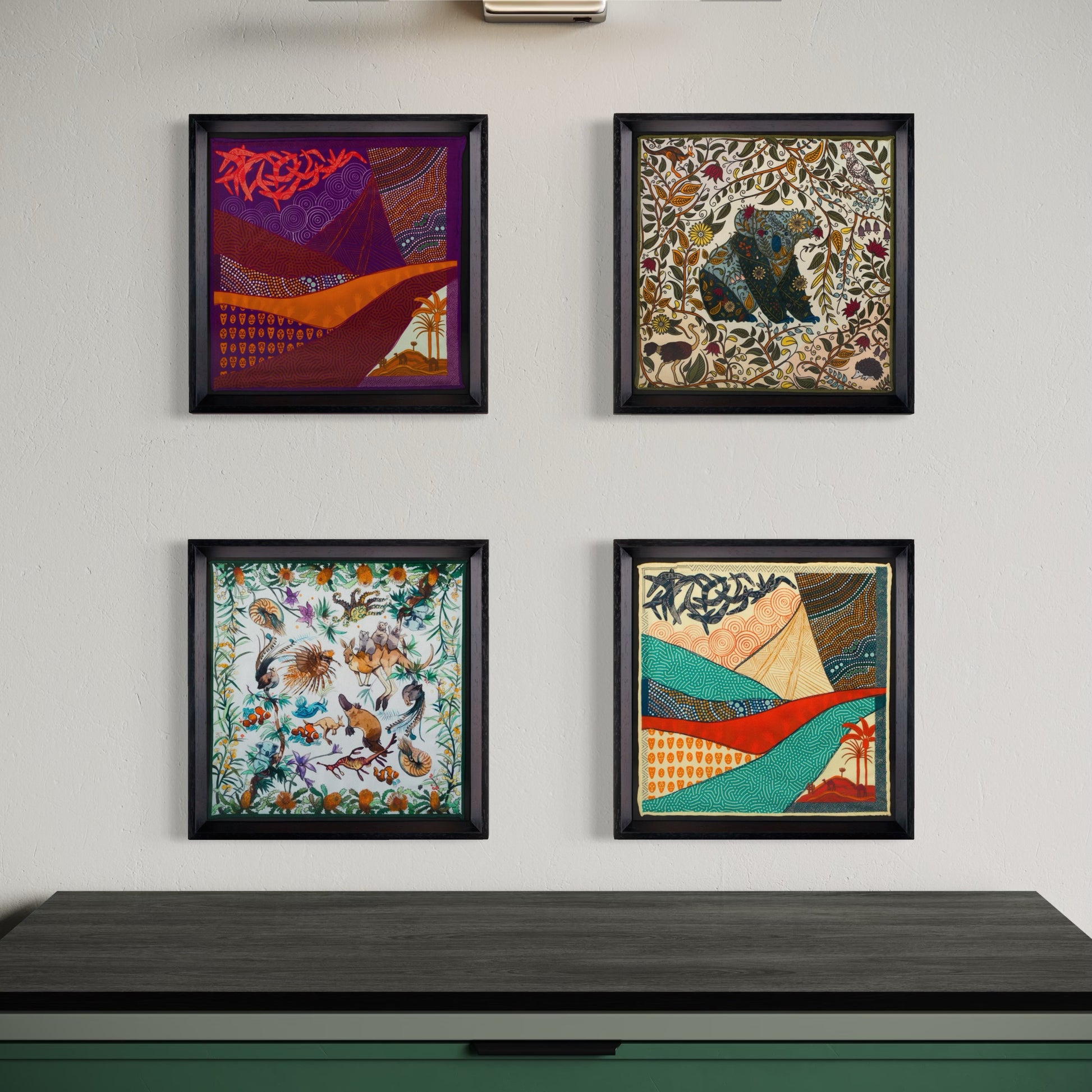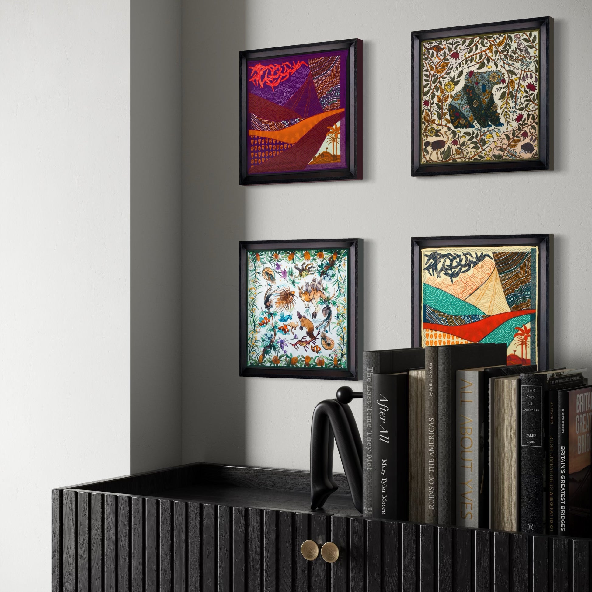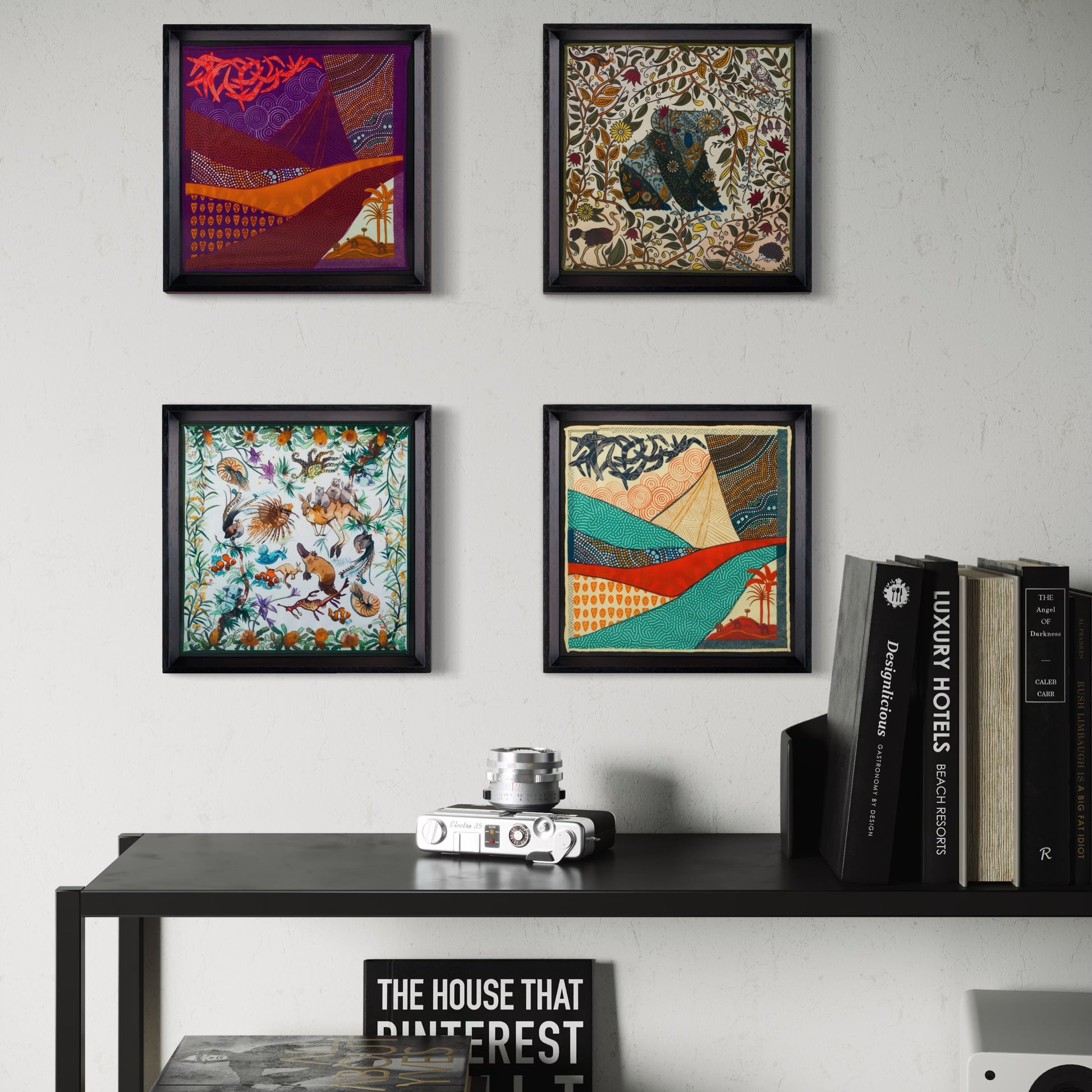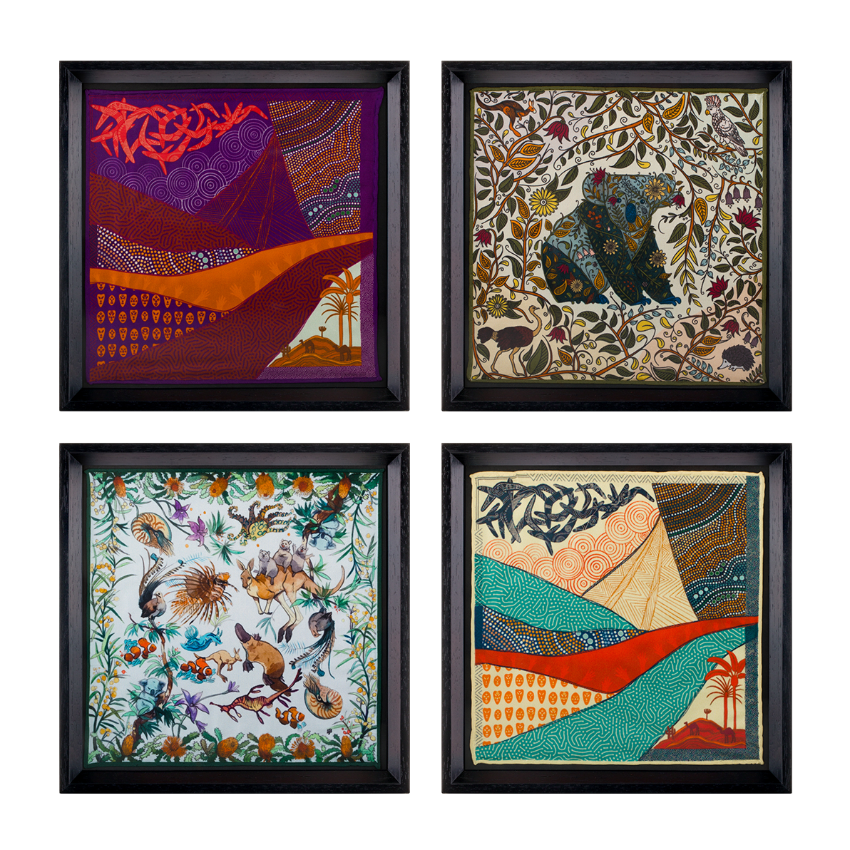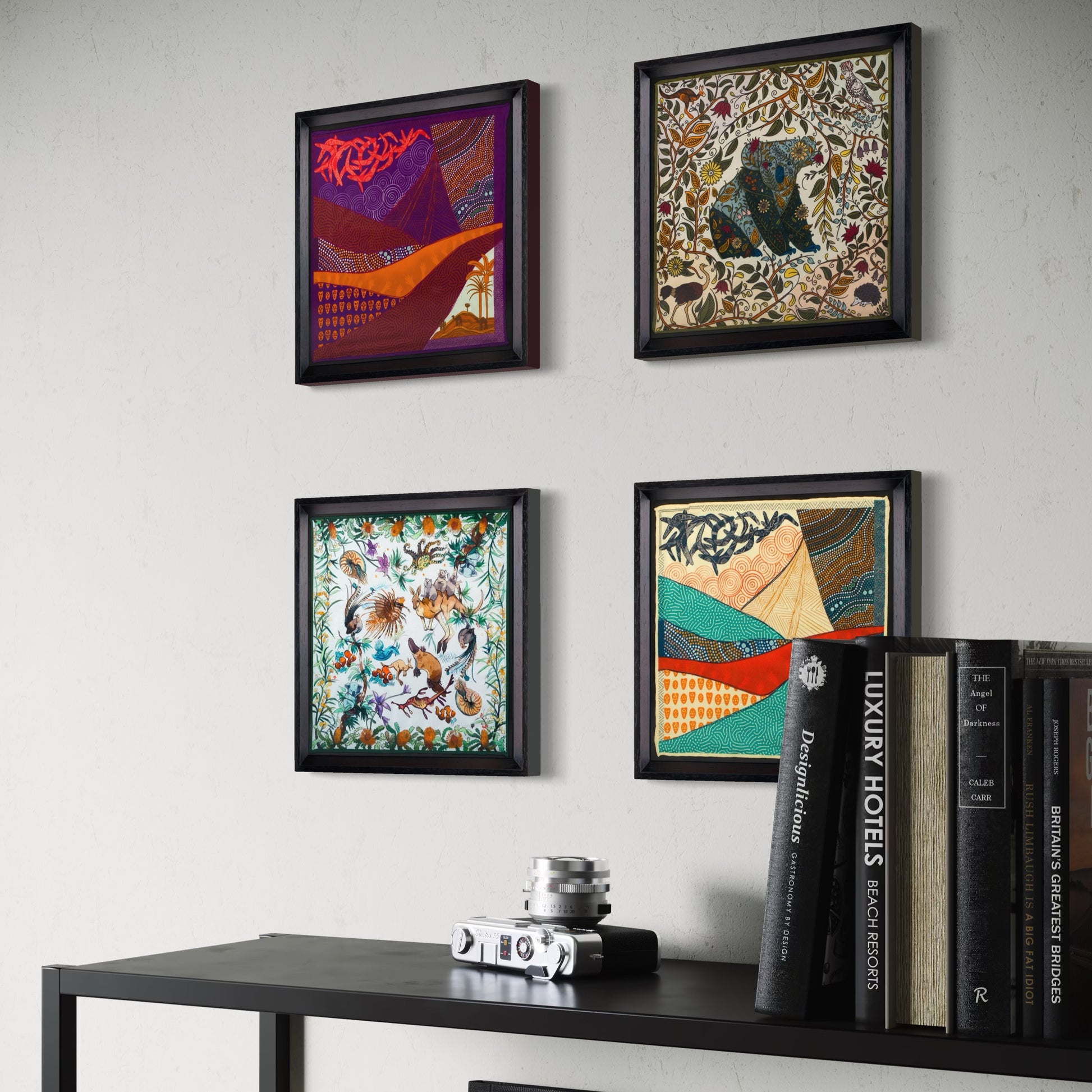 Avustralya Seyahati 4'lü İpek Siyah Tablo Set