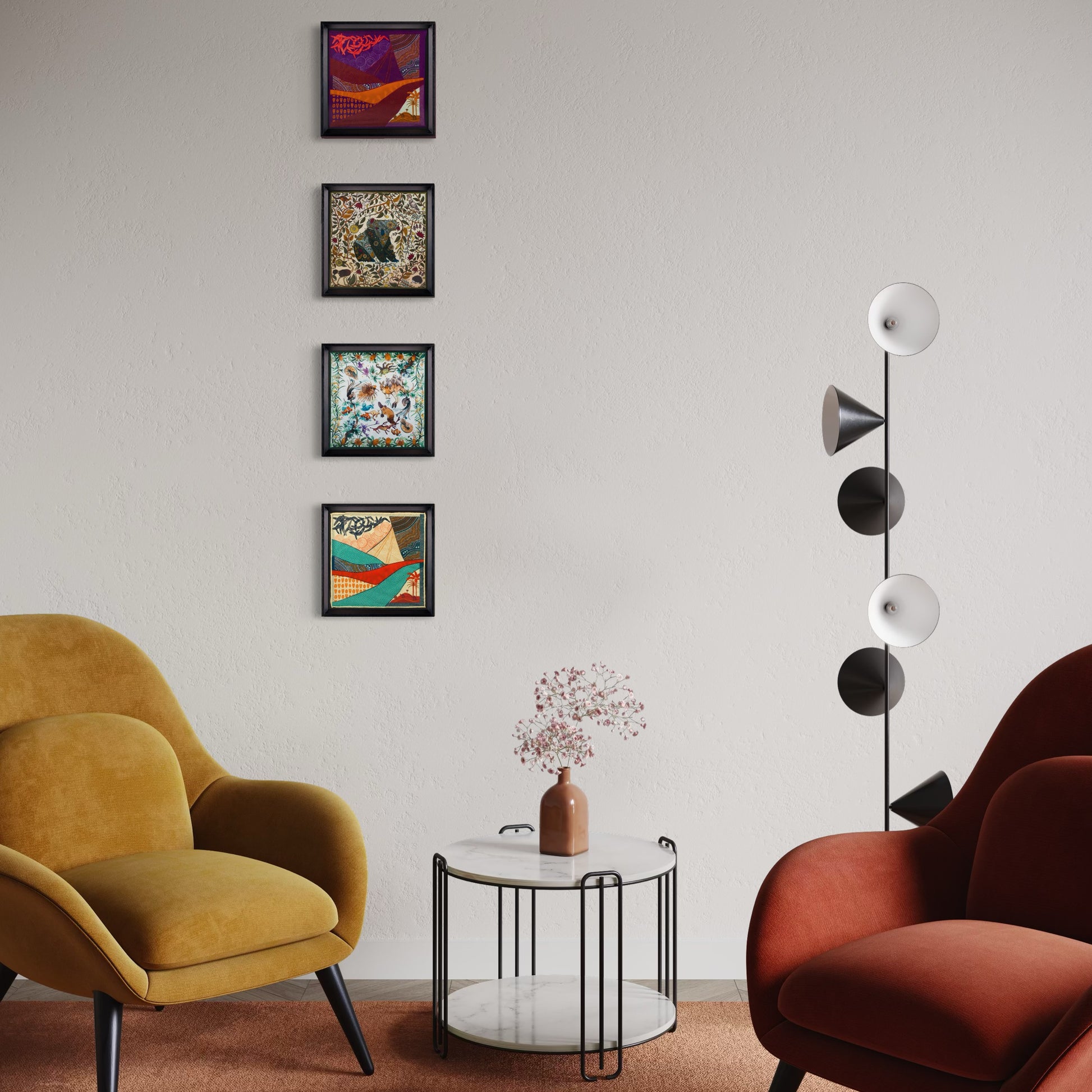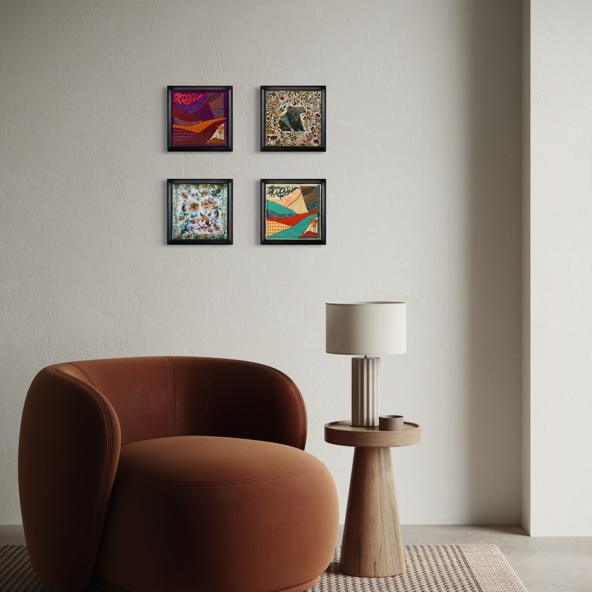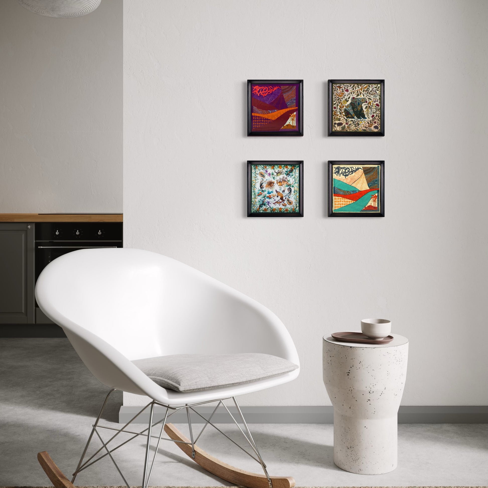 - Görselde kullanılan 4 tablonun ortalama ölçüsü 50x50 cm'dir.