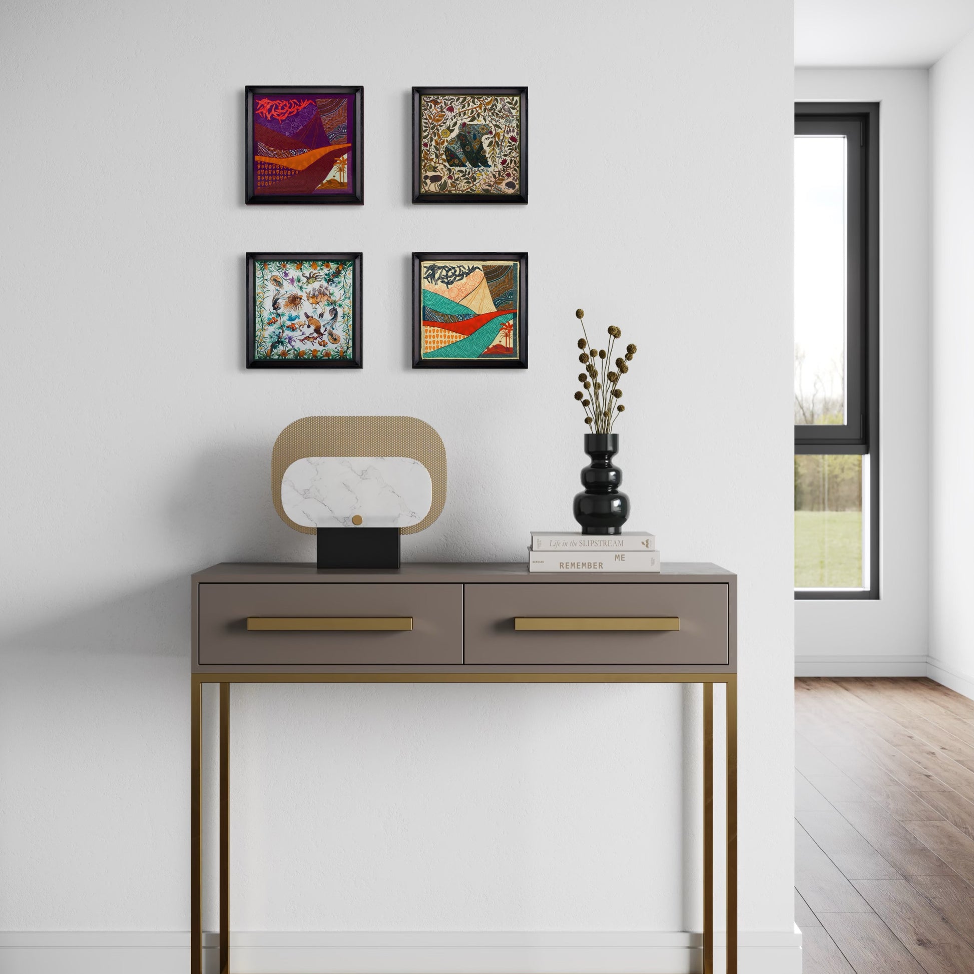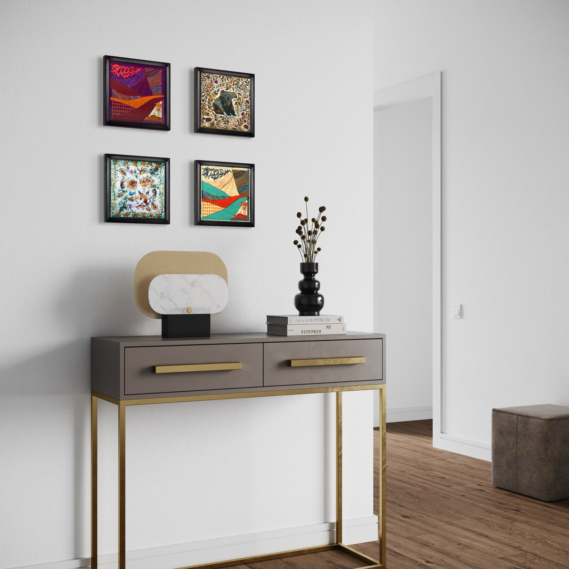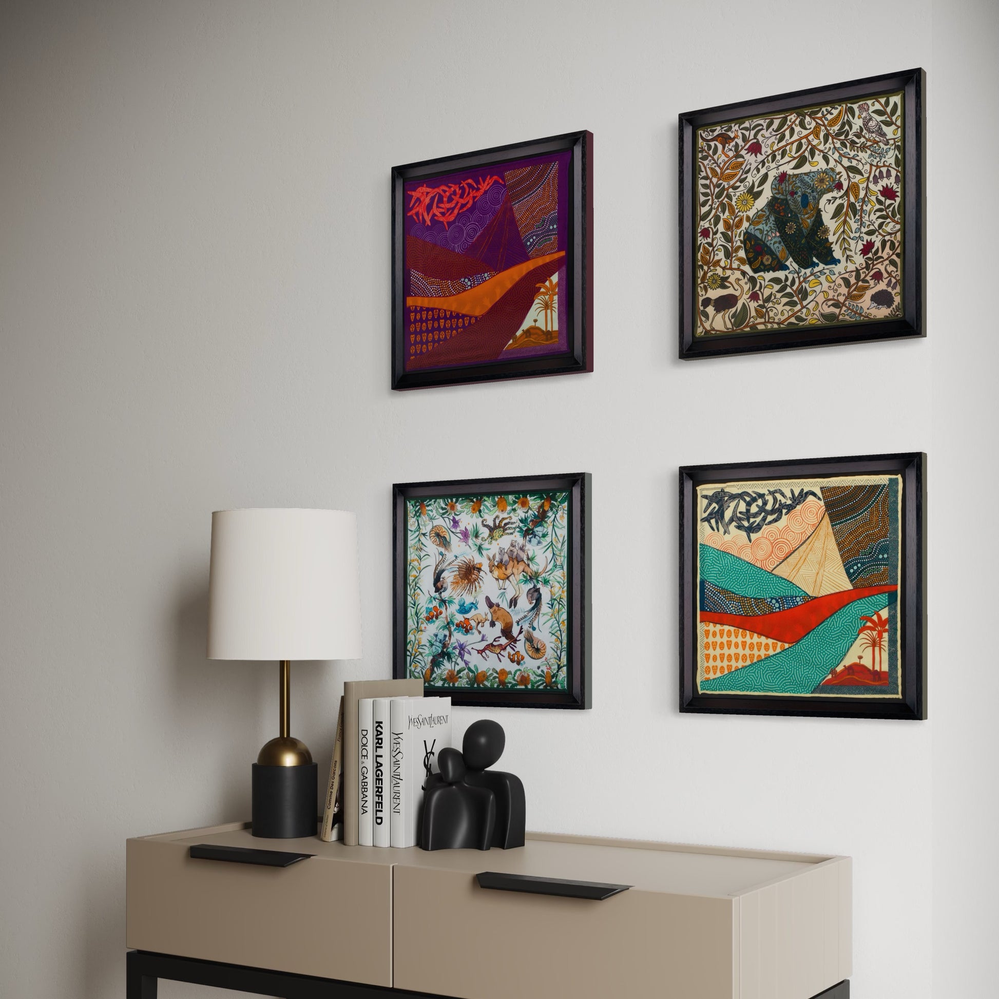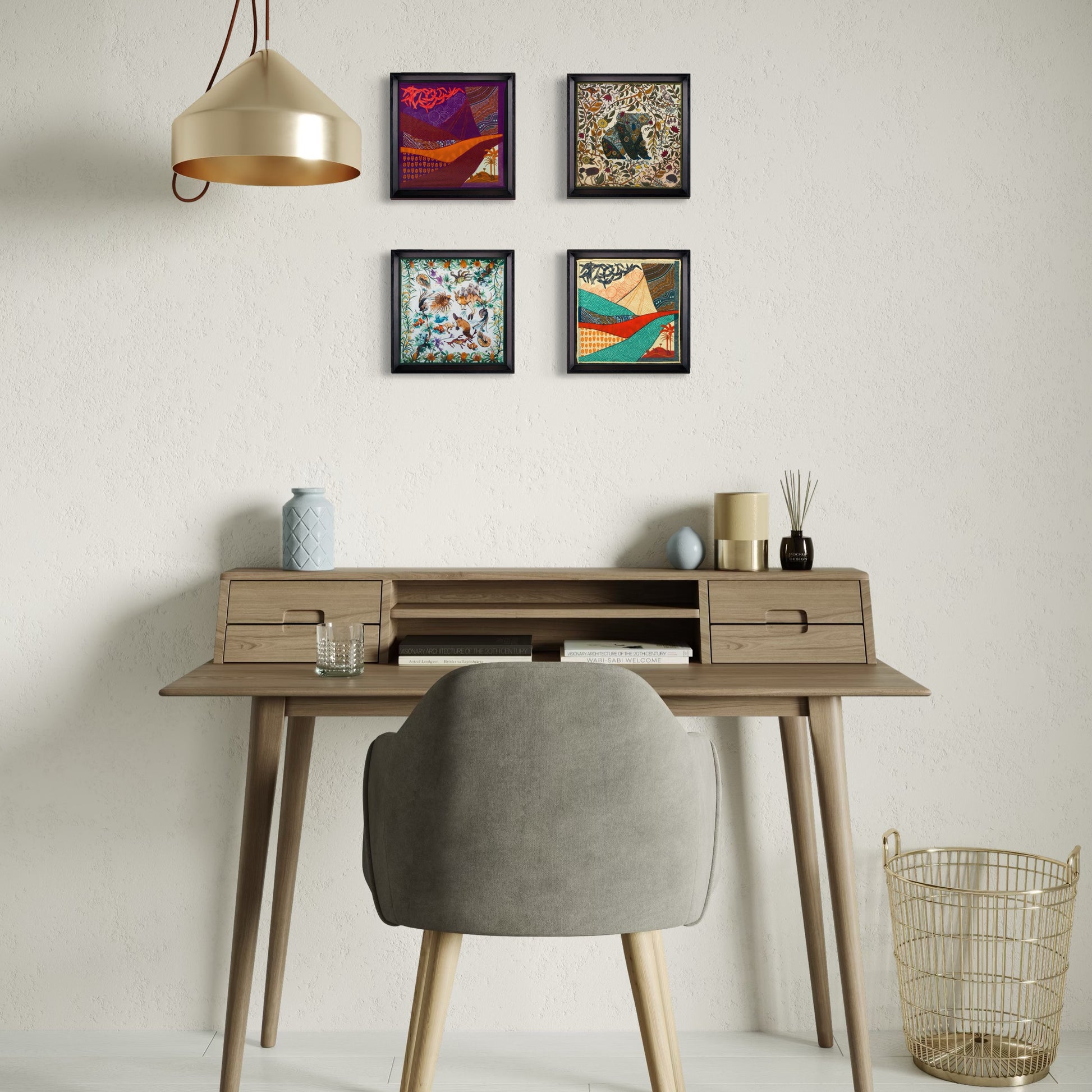 - Görselde kullanılan 4 tablonun ortalama ölçüsü 50x50 cm'dir.