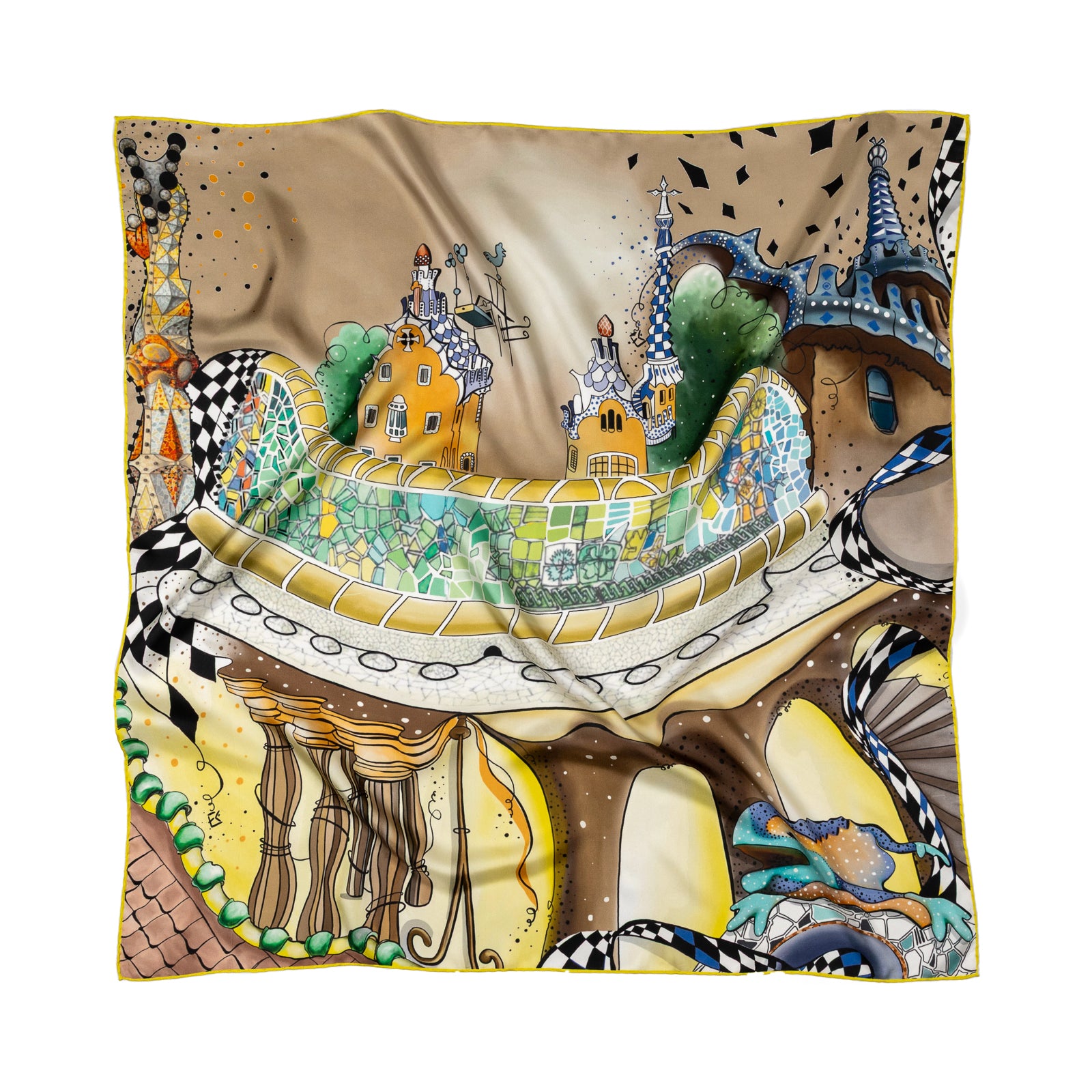 Un Poco'nun İspanya koleksiyonu, İspanya'nın ruhunu ve sanatını yansıtan özel bir yolculuk. Don Kişot'un hayalleriyle başlayan bu serüven, Antoni Gaudi'nin büyülü dünyasına uzanıyor. "İspanyol Rüyası" adını verdiğimiz bu özel ipek fular, Gaudi'nin eşsiz eserlerinden, özellikle de Park Güell'den ilham alınarak tasarlandı.